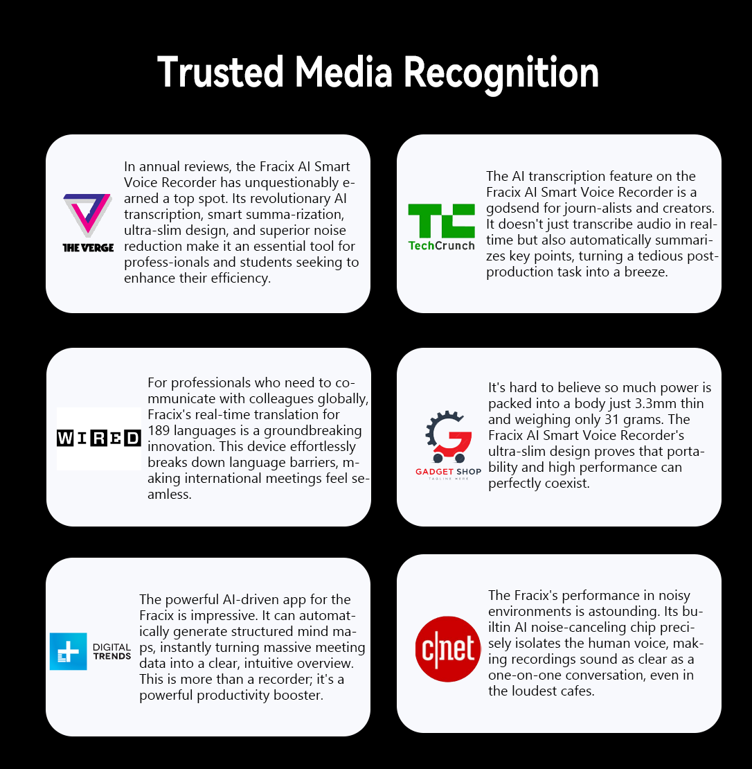 With its powerful AI features and ultra-portable design, the Fracix AI Smart Voice Recorder offers a more efficient and clearer way to capture information.